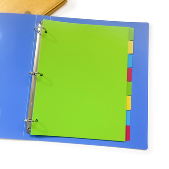 Separatore per legante in plastica a 3 fori con pagina di indice multifunzione