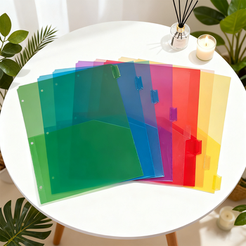 הנמכר ביותר-מכירה מותאמת אישית עמיד רב-צבע תלת-רשתי פלסטיק קלסר עלים סט 8 חוצץ תווית